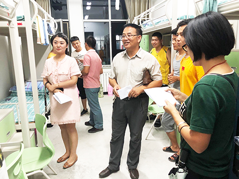 晚上8点半,公司领导、学工办、新生班主任、部分员工干部20余人一同走进员工寝室,看望并慰问2019级全体新生,送去公司的关怀与问候。