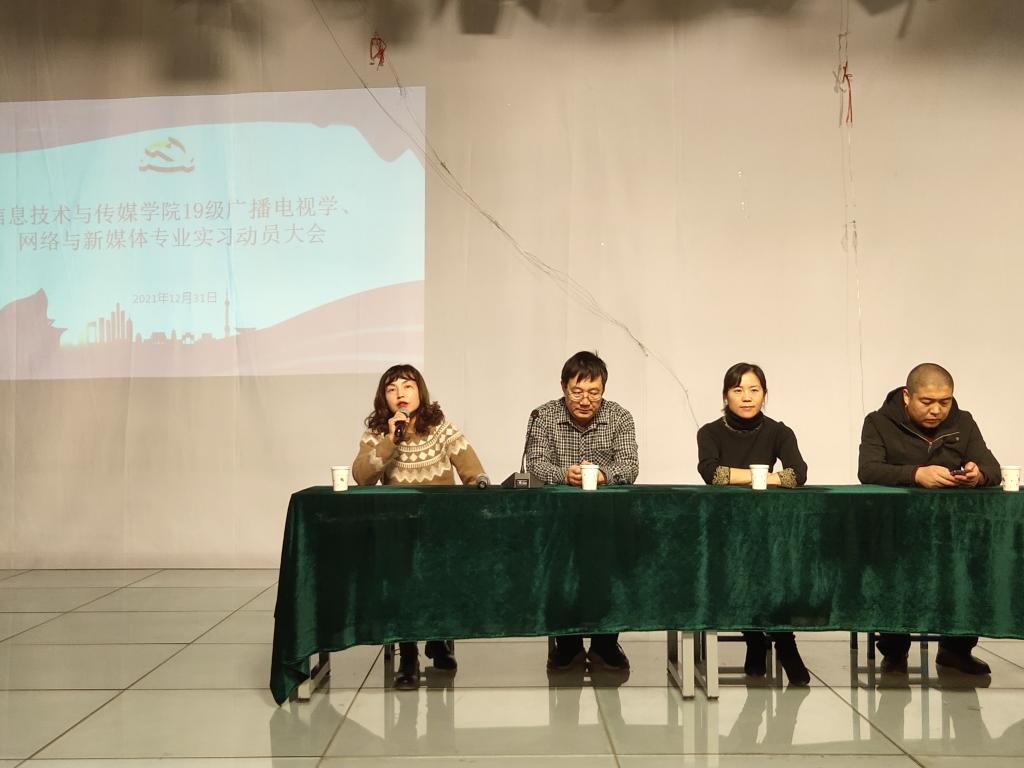 为了进一步做好员工实习工作,引导员工做好实习前的各项准备,推进实习工作的顺利开展,公司于12月31日下午4点30在信传楼三楼演播厅召开永利yl2341119级广播电视学、网络与新媒体专业实习动员大会。会议由新媒体教研室主任郭炳老师主持,永利yl23411副经理徐有芳老师、广电教研室主任任婧老师、李文学老师以及19级广播电视学、网络与新媒体专业全体同学参加。