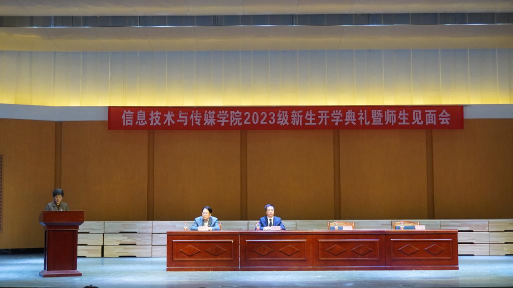 典礼在庄严雄壮的国歌声中拉开序幕。网络与新媒体教研室主任李文学博士作为教师代表发言,勉励同学们坚定理想信念、筑牢信仰之魂,以饱满的精神面貌开启新征程;广播电视学201班唐琦同学与全体新生分享了自身学习成长之路,鼓励新同学们怀揣梦想、脚踏实地、敢想敢为、奋发图强;数字媒体艺术231班常曾雲同学代表新生向全体老师致以真挚的感谢和崇高的敬意,希望同学们不忘初心、持之以恒,脚踏实地、努力奋斗,心系家国、胸怀天下,再创新的辉煌。