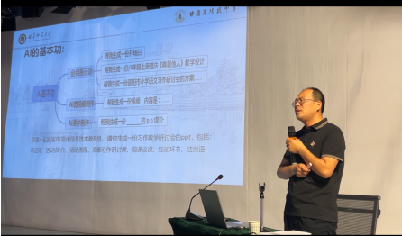 魏江明老师以其深厚的教学功底和对人工智能技术的独到理解,为在场师生揭示了生成式人工智能于教育创新之间的关系。他详细讲解了人工智能在个性化教学、问题解决能力和教学资源优化等方面的应用,并通过生动、新鲜的案例介绍,展示了人工智能与传统教学方法相结合,表现出更加高效和互动化的教学质量与环境。
