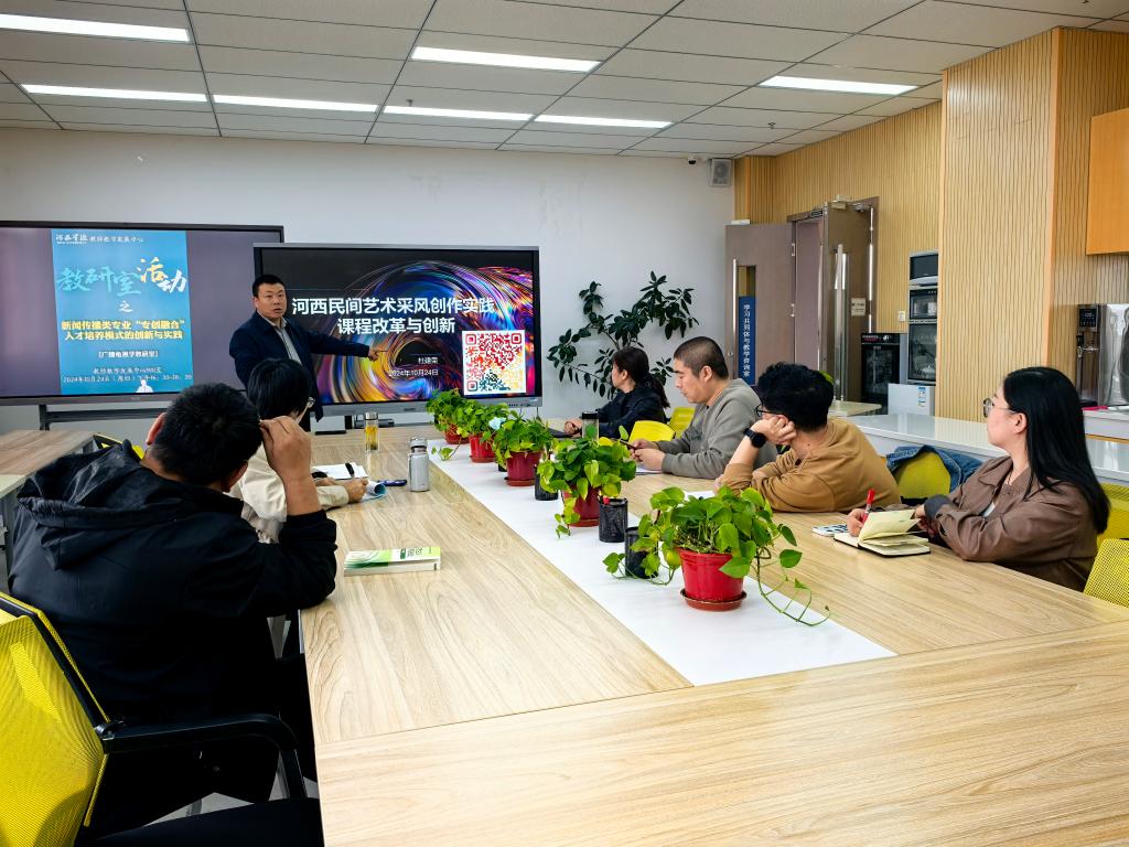 活动中张潇老师分享了《新文科背景下传媒专业三融促教创新人才培养》;李文学老师就《新闻评论》“专创融合”教学创新实践与探索介绍了自己的经验;杜建荣老师则分享了省级一流课程《河西民间艺术采风创作实践》的建设思路和课程亮点,得到了与会教师们的一致好评。